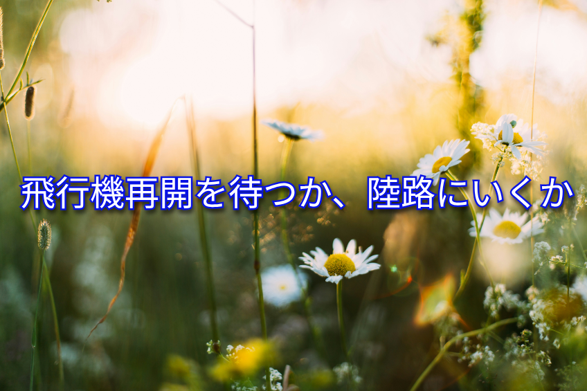 飛行機再開を待つか、陸路にいくか